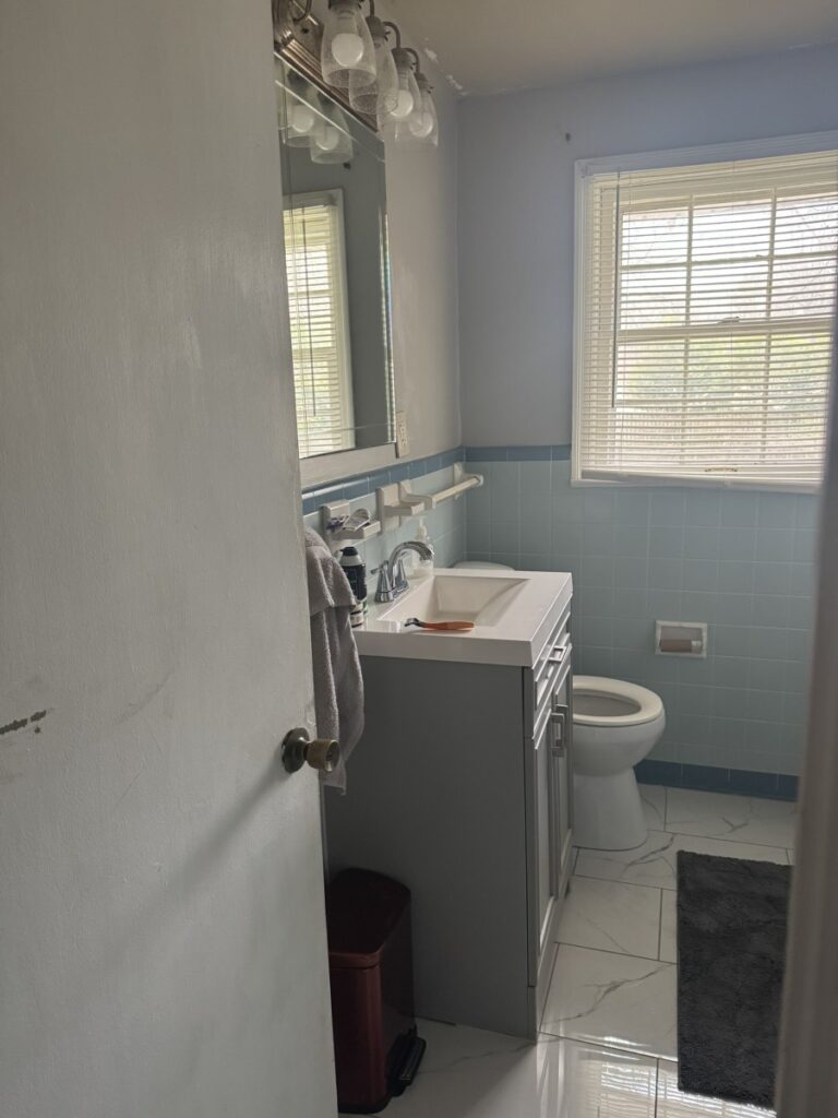 - Tile in bathrooms, linoleum in kitchen
